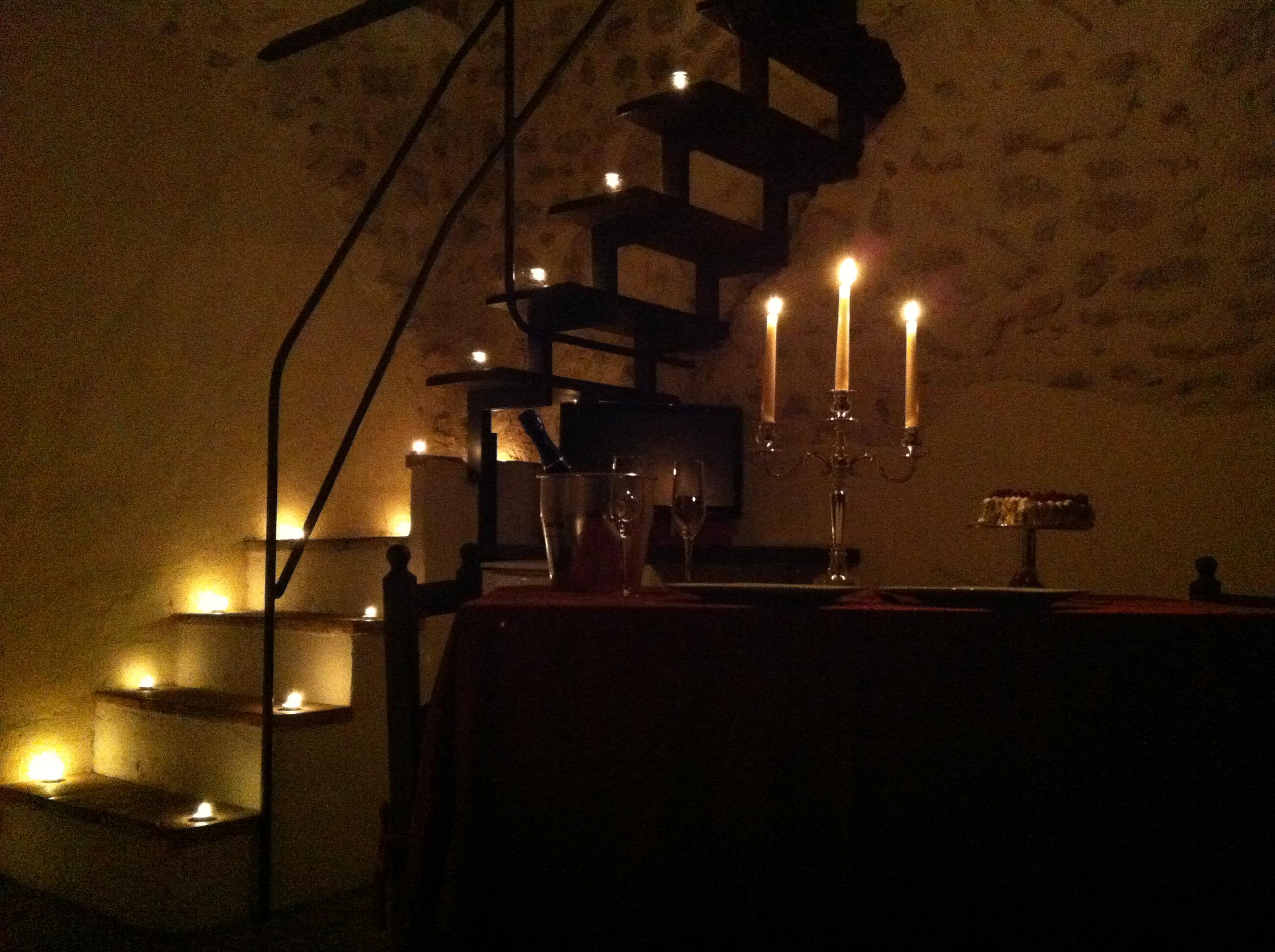 The apartments are on two levels and have a large living room with kitchenette and fireplace on the ground floor and a bedroom double bed and bathroom with shower on the first floor.